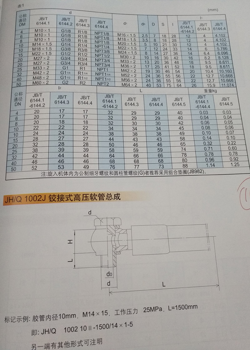 e)膠管內(nèi)徑為DN6,連接螺紋d1=M18*1.5的錐密封膠管總成焊接錐接頭:錐接頭6-M18*1.5 JB/T 6144.5-92