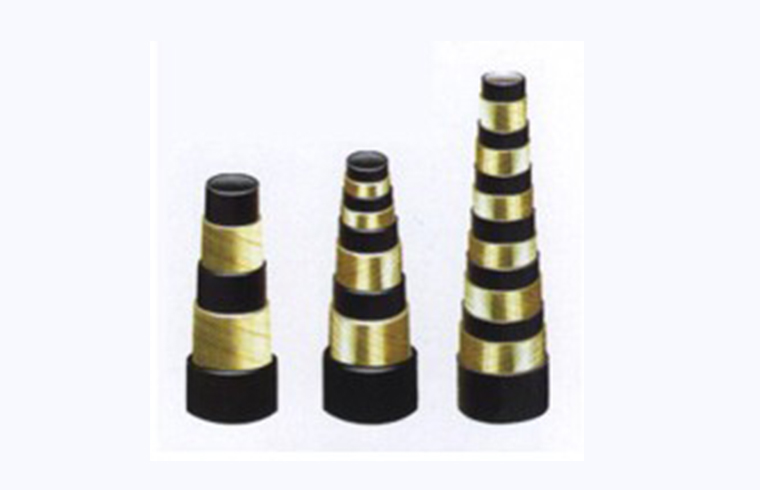 產品結構:主要由內膠層、中膠層、2、4、6層鋼絲纏繞層、外膠層組成。內膠層具有使輸送介質承受壓力,保護鋼絲不受侵蝕的作用,外膠層保護鋼絲不受損傷,鋼絲(ф0.3-2.0增強層)層是骨架材料起增強作用。